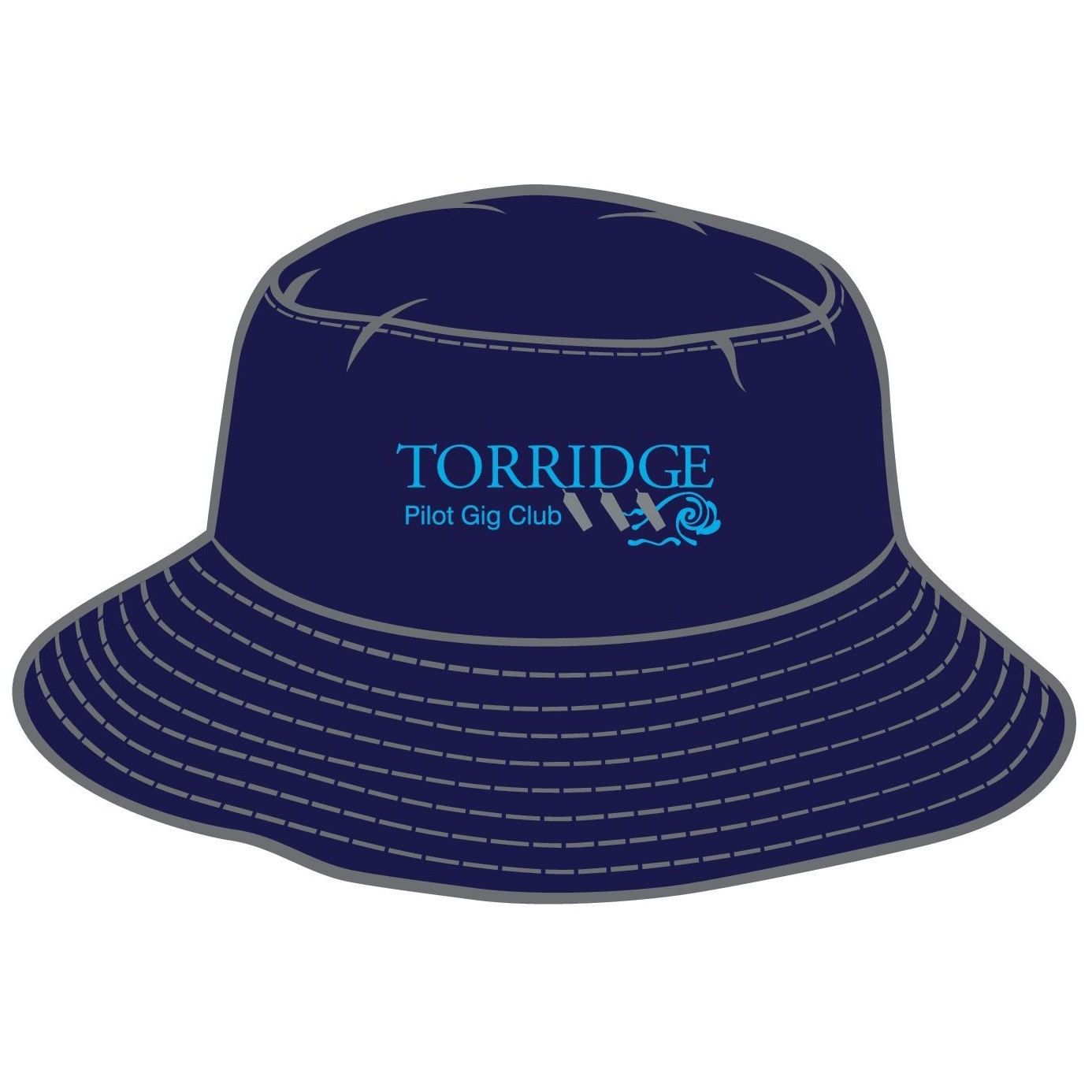 Navy blue blue bucket hat with TPGC logo on the front